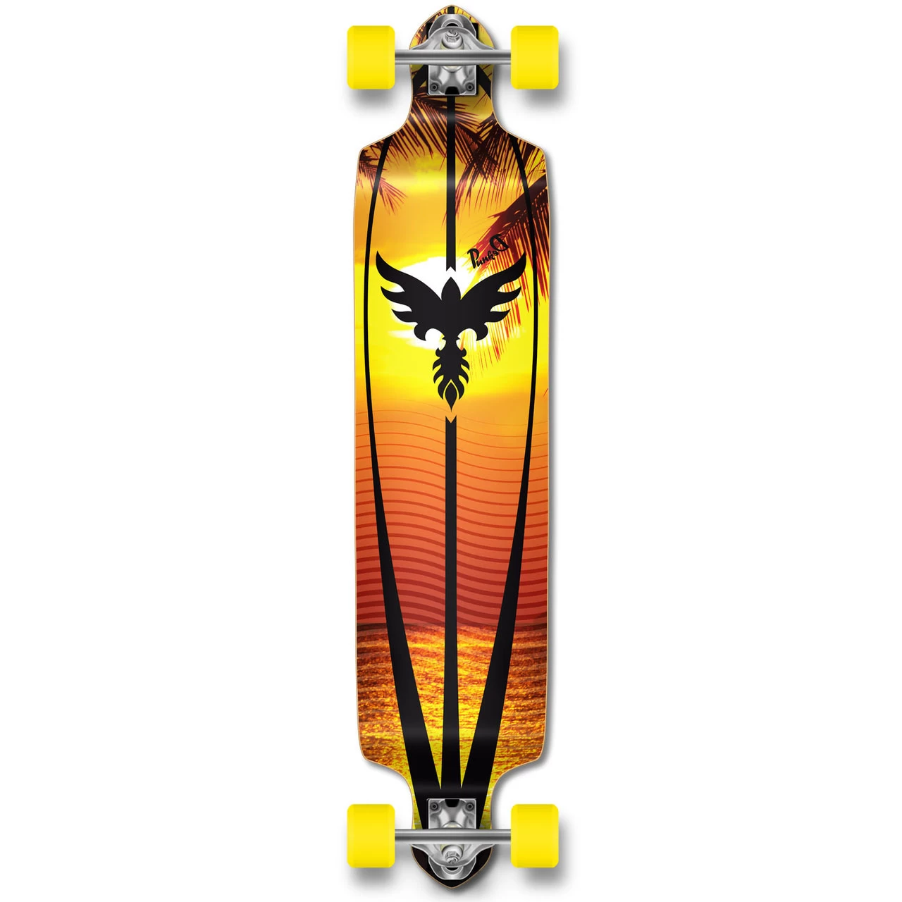 Complete Sunset Drop Down Longboard The Drop Down deck is designed to provide with the rider with a lower center of gravity since the foot platform sits lower than the trucks. With no flex, the Drop Down is capable of achieving high speed and is perfect for Downhill riding Sunset This is just one beatiful Yocaher sunset.