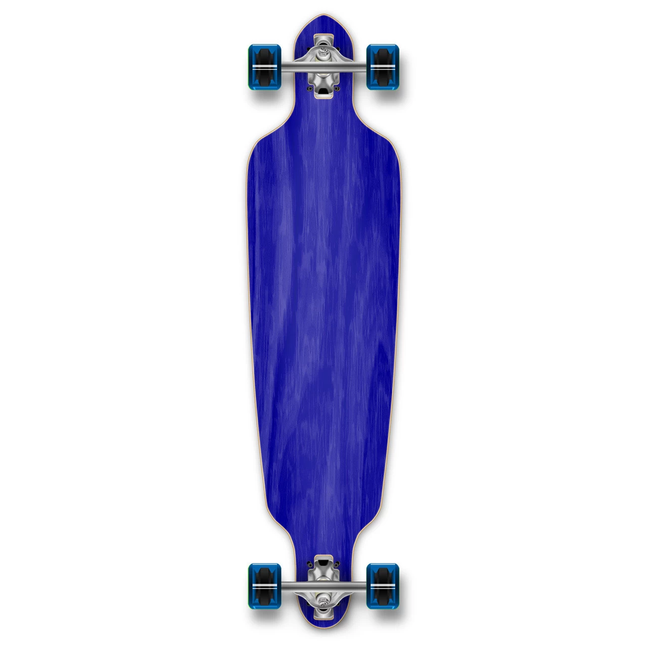 Complete Blank Drop Through Longboard The cutouts on the nose and tail allow the trucks to be top-mounted. Top-mounted trucks allow this shape deck to have more stability when riding at speeds that may not be suitable for beginners. The medium concave and low flex allows the rider to maintain control when carving or sliding at higher speeds. All blank, natural, and stained boards are colored using a high quality stain to provide a long lansting natural, blue, black, red, green, or purple color.