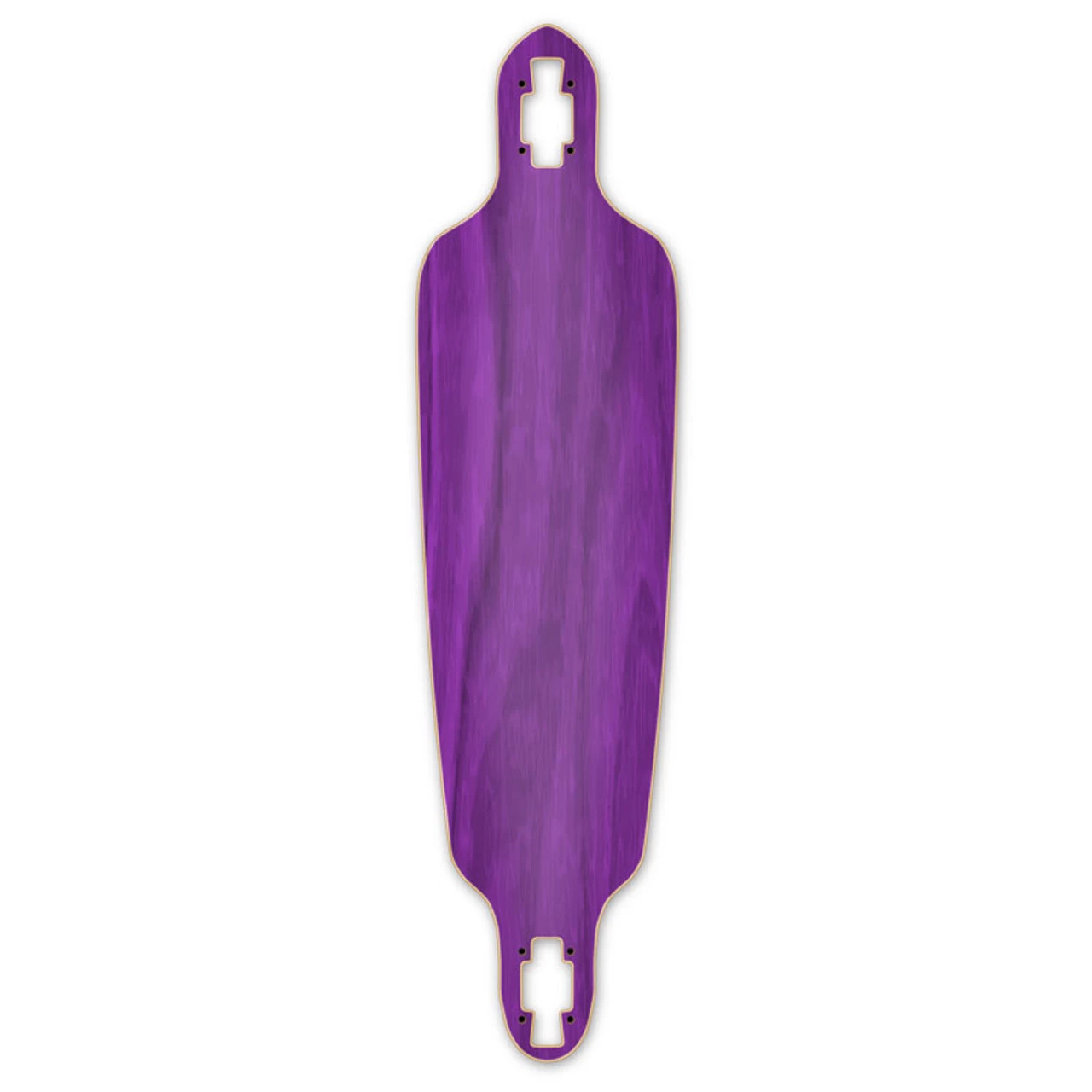 Blank Drop Through Longboard The cutouts on the nose and tail allow the trucks to be top-mounted. Top-mounted trucks allow this shape deck to have more stability when riding at speeds that may not be suitable for beginners. The medium concave and low flex allows the rider to maintain control when carving or sliding at higher speeds. All blank, natural, and stained boards are colored using a high quality stain to provide a long lansting natural, blue, black, red, green, or purple color.