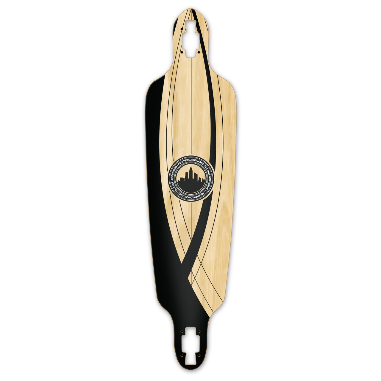Crest Onyx Drop Through Deck The cutouts on the nose and tail allow the trucks to be top-mounted. Top-mounted trucks allow this shape deck to have more stability when riding at speeds that may not be suitable for beginners. The medium concave and low flex allows the rider to maintain control when carving or sliding at higher speeds. Crest This design is the unique Yocaher crest with either a black or burgandy background.