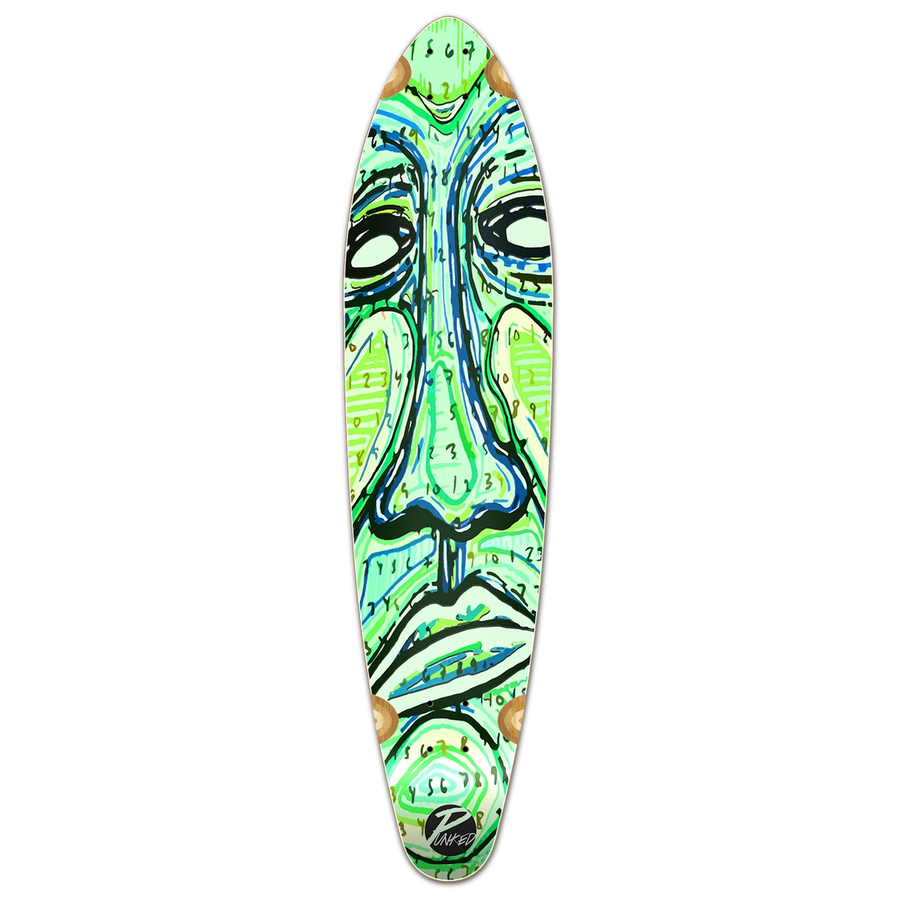 The Kicktail is similar to the pintail shape, but the kicktail shape has a few different features that allows the deck to give the rider more utility. It features a low grade of concave and a kicktail to give riders a more control when riding. Countdown With faces reminiscent of the Moai statues, this graphic represents the never ending countdown until the next great skate session.