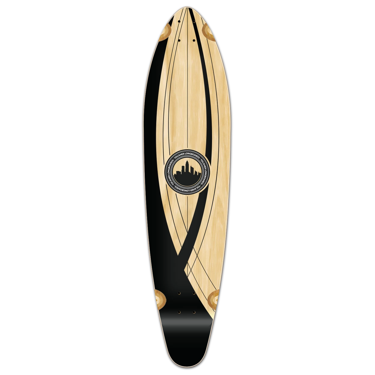 The Kicktail is similar to the pintail shape, but the kicktail shape has a few different features that allows the deck to give the rider more utility. It features a low grade of concave and a kicktail to give riders a more control when riding. Crest This design is the unique Yocaher crest with either a black or burgandy background.