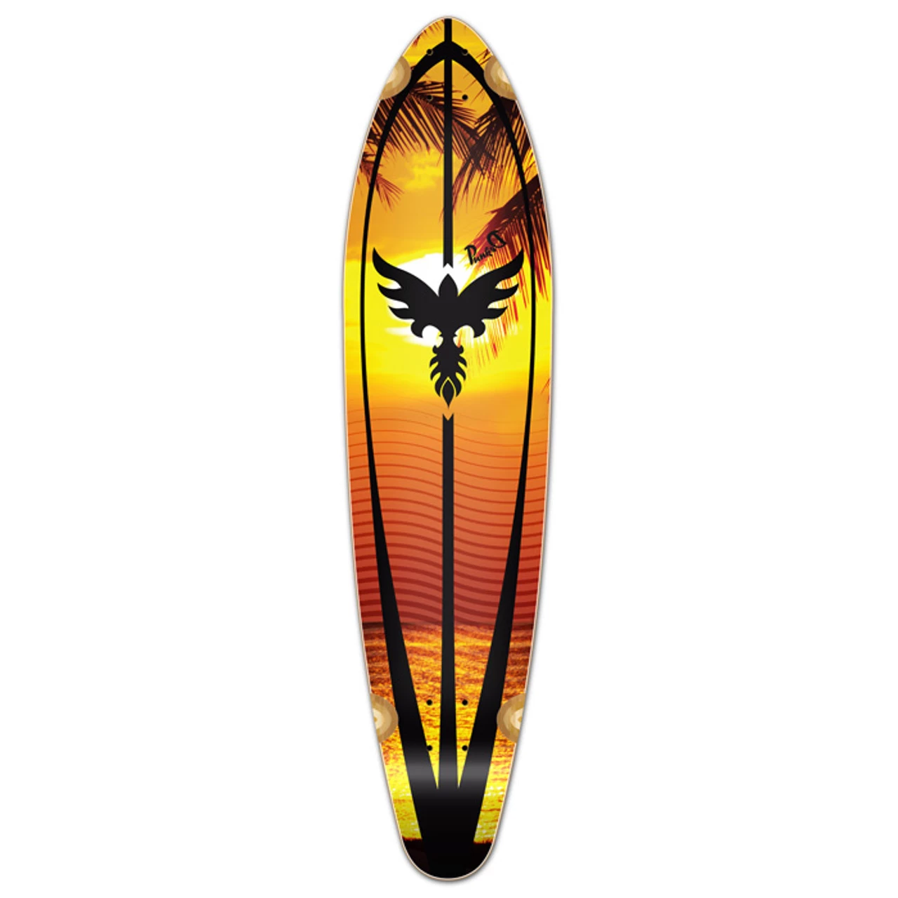 The Kicktail is similar to the pintail shape, but the kicktail shape has a few different features that allows the deck to give the rider more utility. It features a low grade of concave and a kicktail to give riders a more control when riding. Sunset This is just one beatiful Yocaher sunset.