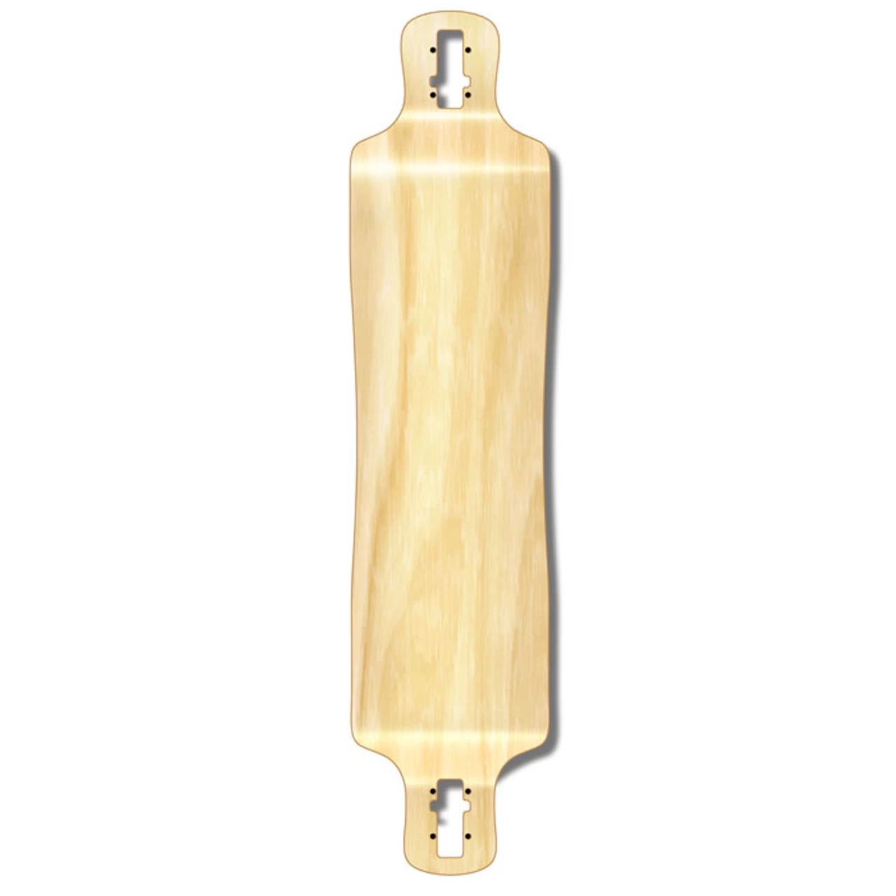 Blank Lowrider Longboard The lowrider provides the notable features from the Drop Through and Drop Down deck styles. The trucks are top mounted and the foot platform sits lower than the trucks. This shape deck allows for gnarly shredding and free-ride capabilities. This deck shape is designed for experienced riders. All blank, natural, and stained boards are colored using a high quality stain to provide a long lansting natural, blue, black, red, green, or purple color.