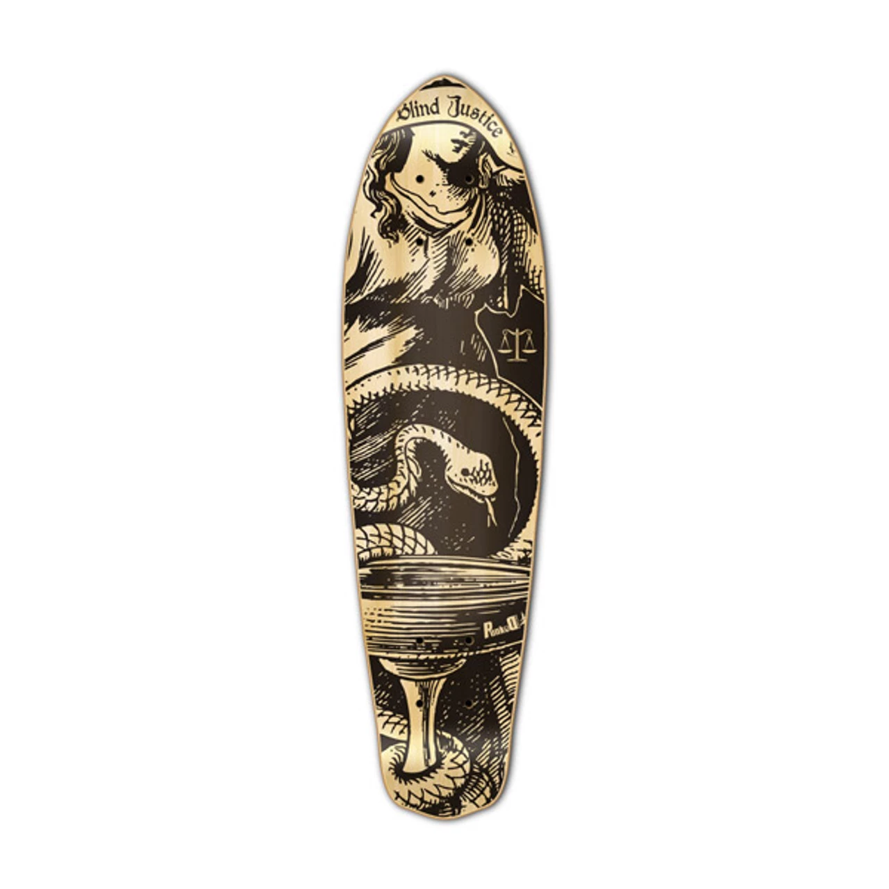 Natural Blind Justice Micro Cruiser The micro cruiser closely resembles the plastic skateboards made in the 70s. The micro size allows different ride types. It can be used for small children, or experienced carvers who are able to weave in and out in a tight pattern Blind Justice This is a righteous graphic featuring the Lady of justice, Venemous snake, and a chalice. This graphic can be found in either black and white, or black and woodgrain.