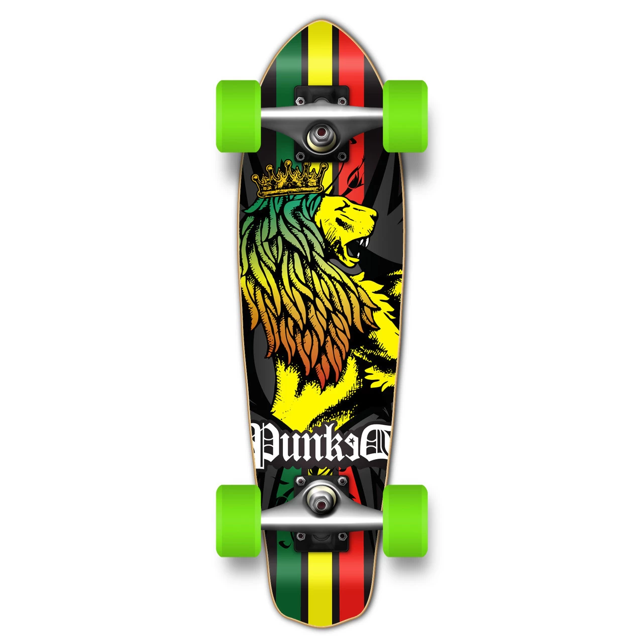 Complete “Rasta” Micro Cruiser The micro cruiser closely resembles the plastic skateboards made in the 70s. The micro size allows different ride types. It can be used for small children, or experienced carvers who are able to weave in and out in a tight pattern Rasta This graphic depicts a lion colored with a rasta gradient in the foreground and rasta racing stripes in the background