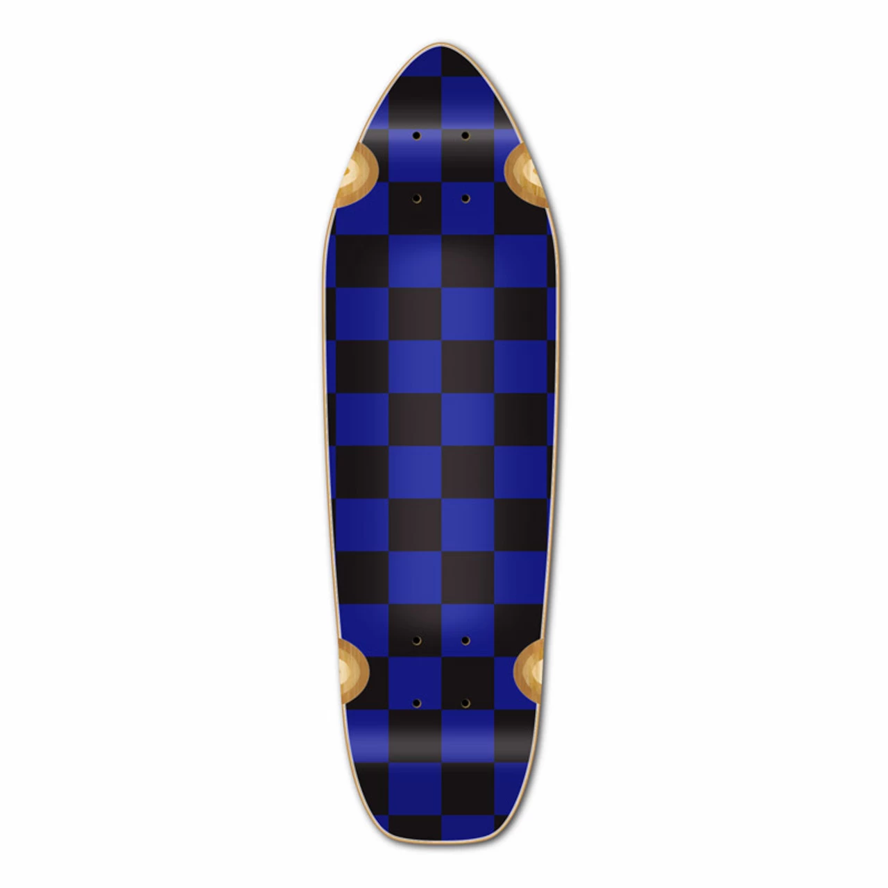 Checker Mini Cruiser This small deck shape is most popularly known as a campus cruiser. Its small size allows intense carving and total control when utilizing the kicktail for sharp turns. Checker This great checker pattern can be found in multiple color variations including blue, red, green, purple, white, pink, yellow, orange, and silver checkers.