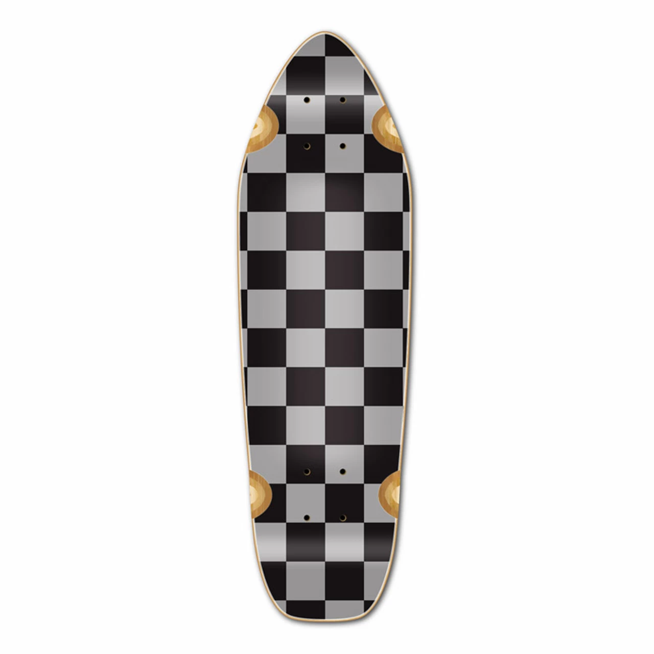 Checker Mini Cruiser This small deck shape is most popularly known as a campus cruiser. Its small size allows intense carving and total control when utilizing the kicktail for sharp turns. Checker This great checker pattern can be found in multiple color variations including blue, red, green, purple, white, pink, yellow, orange, and silver checkers.