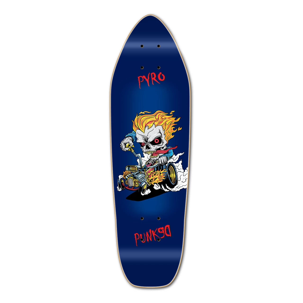 Hot Rod Series: Pyro Mini Cruiser This small deck shape is most popularly known as a campus cruiser. Its small size allows intense carving and total control when utilizing the kicktail for sharp turns. Hot Rod Series As part of the Hot rod Series, Pyro is a flaming skull in a Hot Ride, looking to get some crazy racing in.