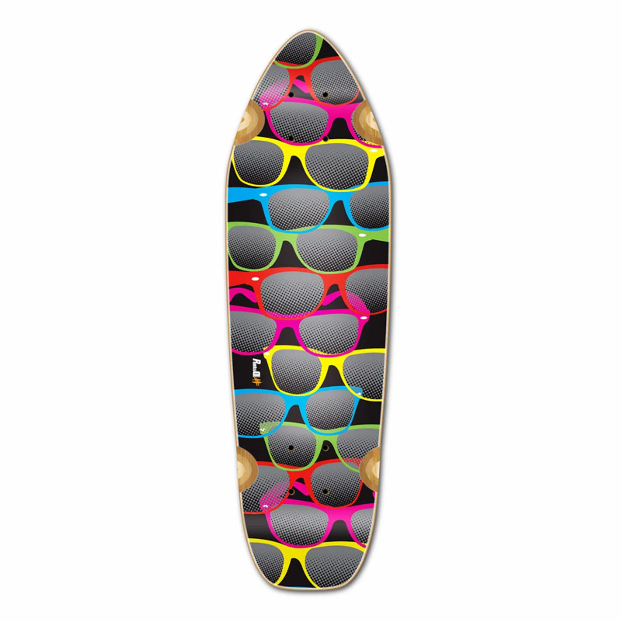 Shades Mini Cruiser This small deck shape is most popularly known as a campus cruiser. Its small size allows intense carving and total control when utilizing the kicktail for sharp turns. Shades Showing off our multicolor stack off shades over either a black or white background.