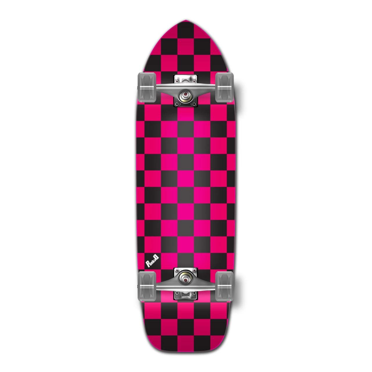 Complete Checker Old School Longboard The old school board is a classic. The retro style deck features a 16 wheelbase, which is the industry standard for a pool thrasher. With a nose slightly longer than other boards with the same wheelbase, the Old School Cruiser will allow the rider to perform more tricks and the option for different styles of pool shredding. It has old school flavor, with a modern twist. Checker This great checker pattern can be found in multiple color variations including blue, red, green, purple, white, pink, yellow, orange, and silver checkers.