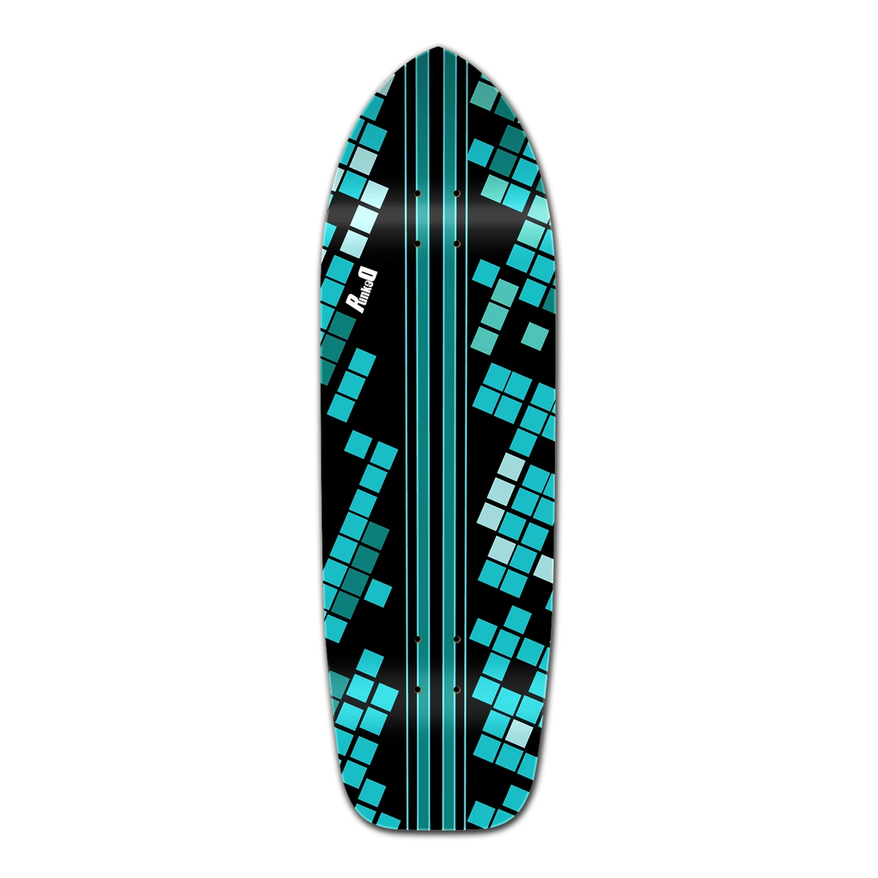 Black Digital Wave Old School Complete The old school board is a classic. The retro style deck features a 16′ wheelbase, which is the industry standard for a pool thrasher. With a nose slightly longer than other boards with the same wheelbase, the Old School Cruiser will allow the rider to perform more tricks and the option for different styles of pool shredding. It has old school flavor, with a modern twist. Digital Wave This board is a new age digital rendition of waves running parallel to each other across the sides of the board. This graphic can be found as a blue digital wave over either a black or a white background.