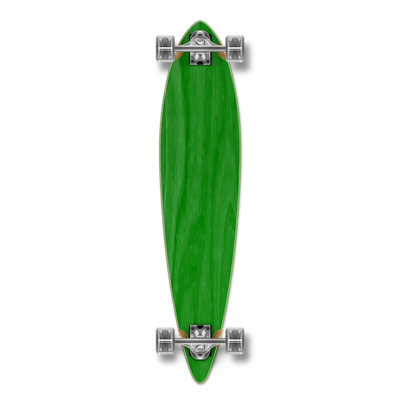 What you’re looking at is a STAINED GREEN Pintail Longboard. The pintail teardrop-shaped deck is the most suitable for beginners. The shape prevents the wheel from contacting with the board while still providing ample footspace. Pintails also make excellent campus cruisers.