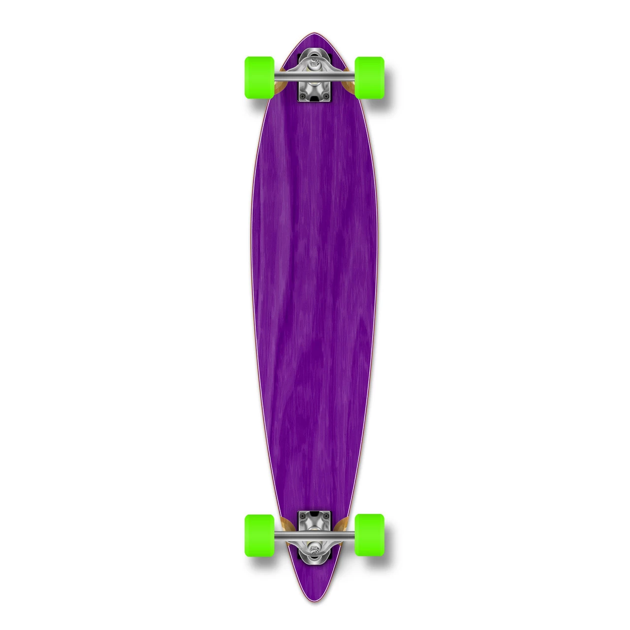 What you’re looking at is a STAINED PURPLE Pintail Longboard. The pintail teardrop-shaped deck is the most suitable for beginners. The shape prevents the wheel from contacting with the board while still providing ample footspace. Pintails also make excellent campus cruisers.