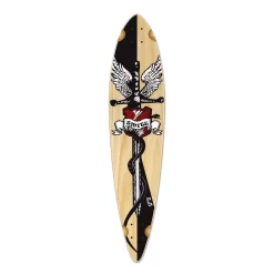 What you’re looking at is a Pintail Longboard Deck. The pintail teardrop-shaped deck is the most suitable for beginners. The shape prevents the wheel from contacting with the board while still providing ample footspace. Pintails also make excellent campus cruisers.