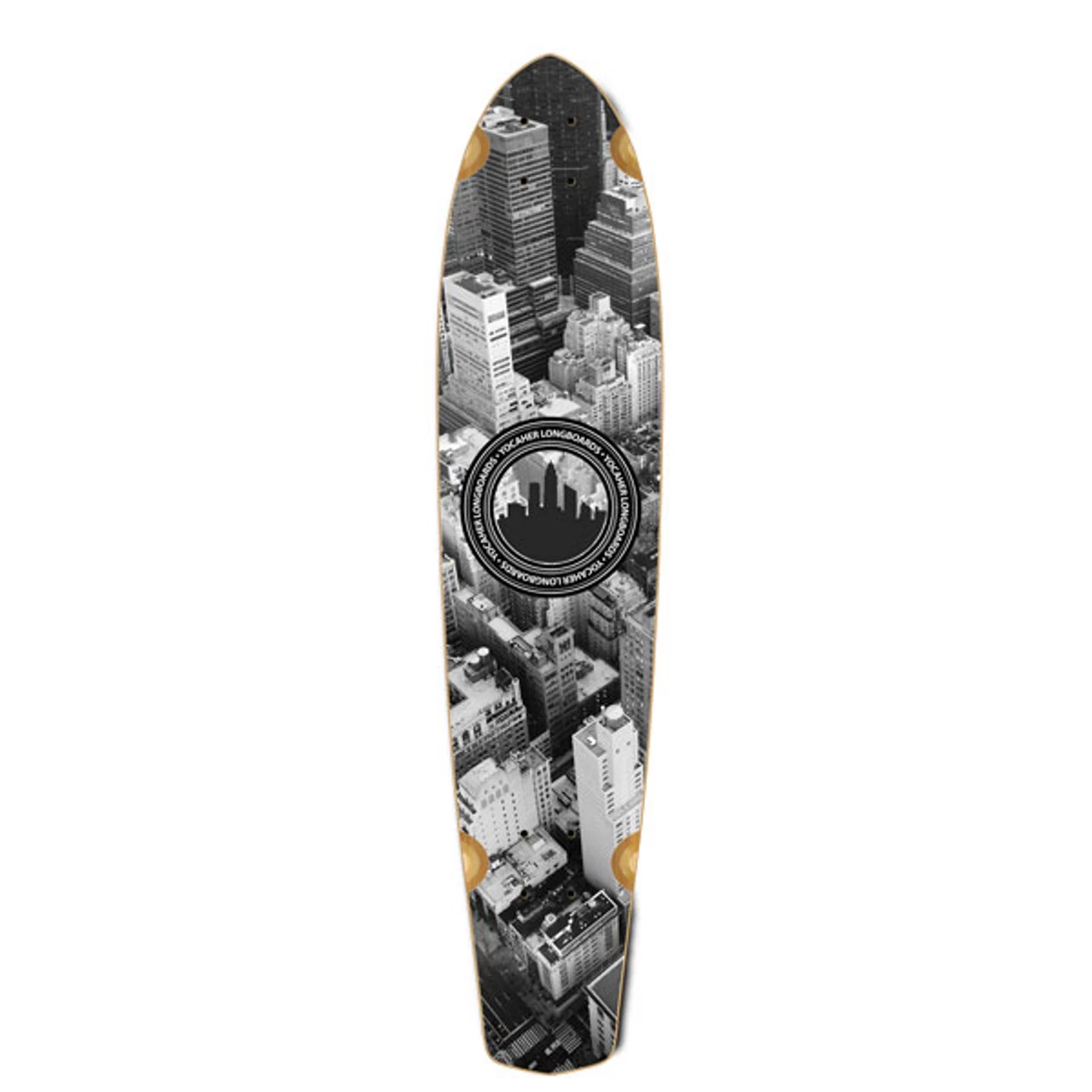 New York Slimkick Longboard The Slimkick brings back a vintage classic. The deck is flat and has a kicktail with no flex. This board is perfect for cruising around. New York As part of our CitySkape collection this graphic depicts newyork in all of its beauty