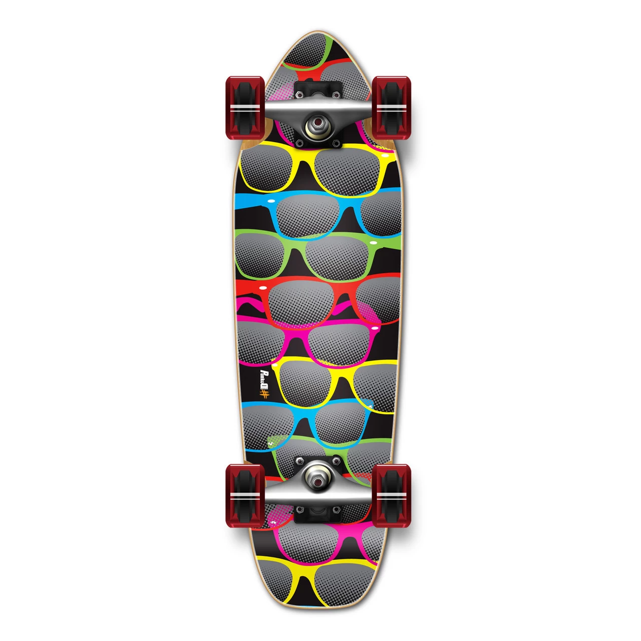 Complete Shades Mini Cruiser This small deck shape is most popularly known as a campus cruiser. Its small size allows intense carving and total control when utilizing the kicktail for sharp turns. Shades Showing off our multicolor stack off shades over either a black or white background.
