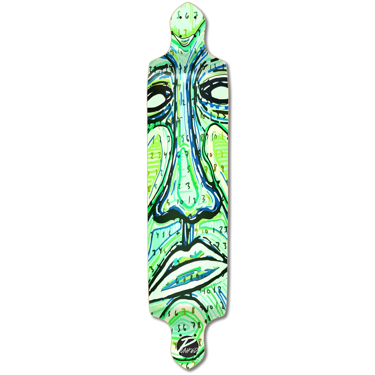Countdown Drop Down Longboard The Drop Down deck is designed to provide with the rider with a lower center of gravity since the foot platform sits lower than the trucks. With no flex, the Drop Down is capable of achieving high speed and is perfect for Downhill riding Countdown With faces reminiscent of the Maoi statues, this graphic represents the never ending countdown until the next great skate session.