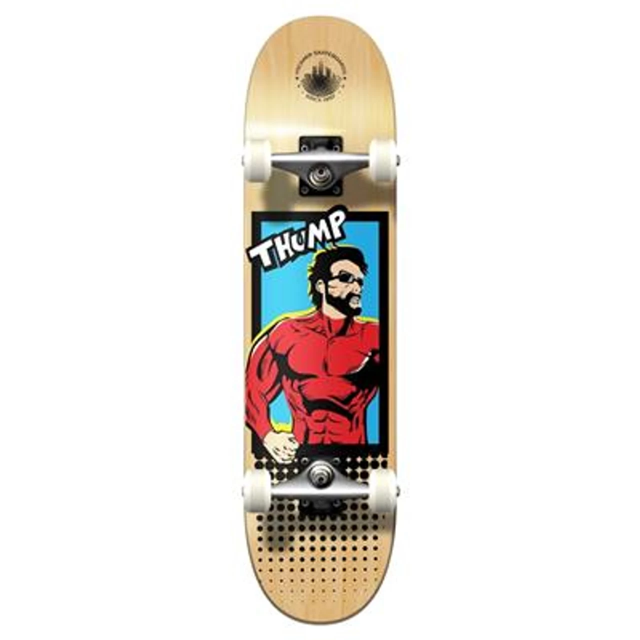 Complete Comix Series Thunder Skateboard This new school skateboard comes with a mellow concave allowing for a more flat-footed skating style. The edges of the board are not so bowled compared to medium and steep concaves.
