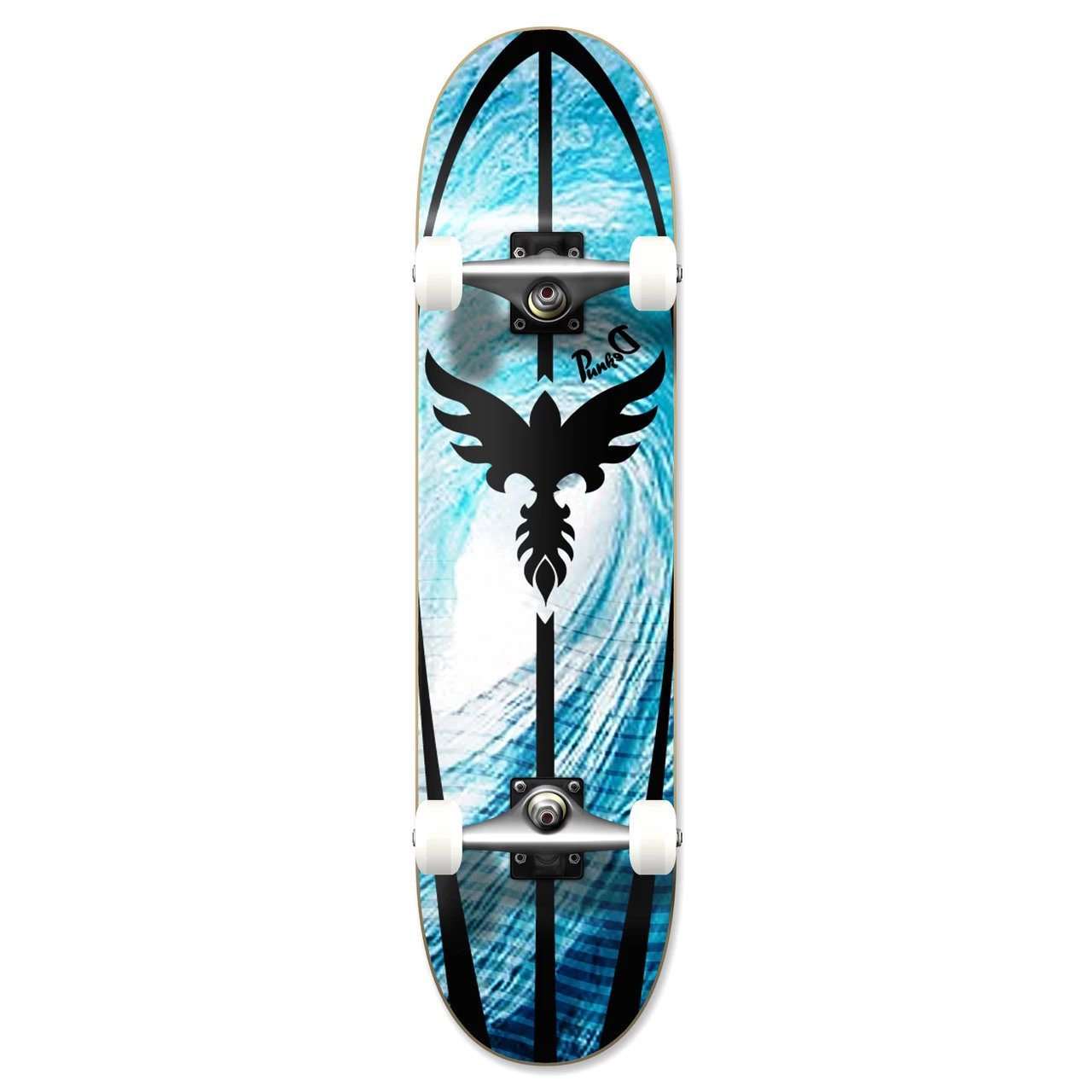 Complete Tsunami Skateboard This new school skateboard comes with a mellow concave allowing for a more flat-footed skating style. The edges of the board are not so bowled compared to medium and steep concaves. Tsunami This graphic depicts the shadow of an eagle soaring through the heart of a tsunami.
