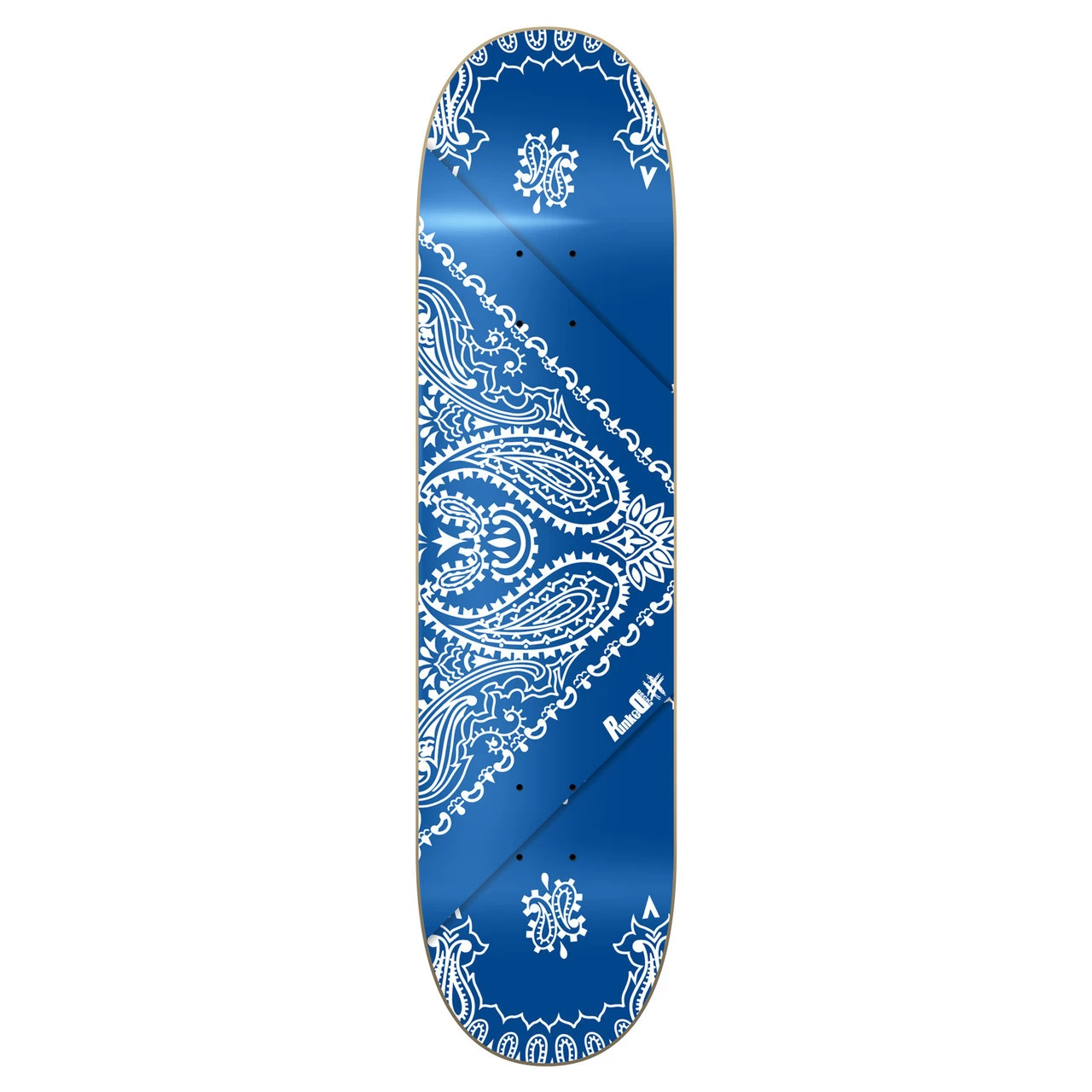 Bandana The classic bandana design which is available im multiple colors, including: black, white, red, blue and baby blue. This new school skateboard comes with a mellow concave allowing for a more flat-footed skating style. The edges of the board are not so bowled compared to medium and steep concaves.