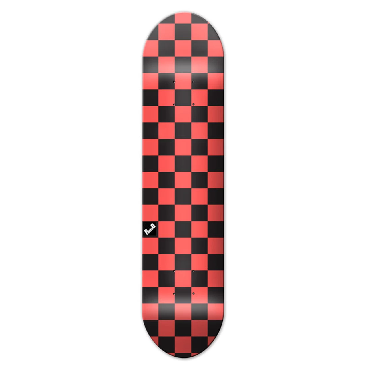 Checkered Skateboard This new school skateboard comes with a mellow concave allowing for a more flat-footed skating style. The edges of the board are not so bowled compared to medium and steep concaves. This great checker pattern can be found in multiple color variations including blue, red, green, purple, white, pink, yellow, orange, and silver checkers