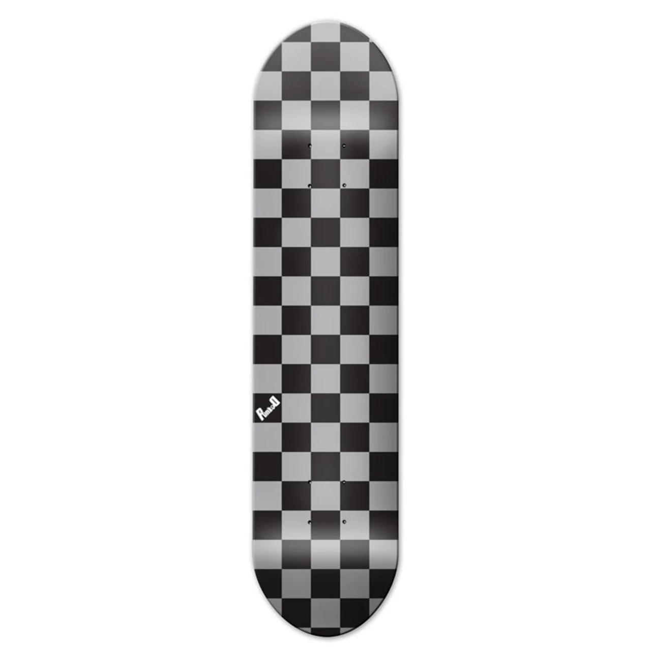 Checkered Skateboard This new school skateboard comes with a mellow concave allowing for a more flat-footed skating style. The edges of the board are not so bowled compared to medium and steep concaves. This great checker pattern can be found in multiple color variations including blue, red, green, purple, white, pink, yellow, orange, and silver checkers